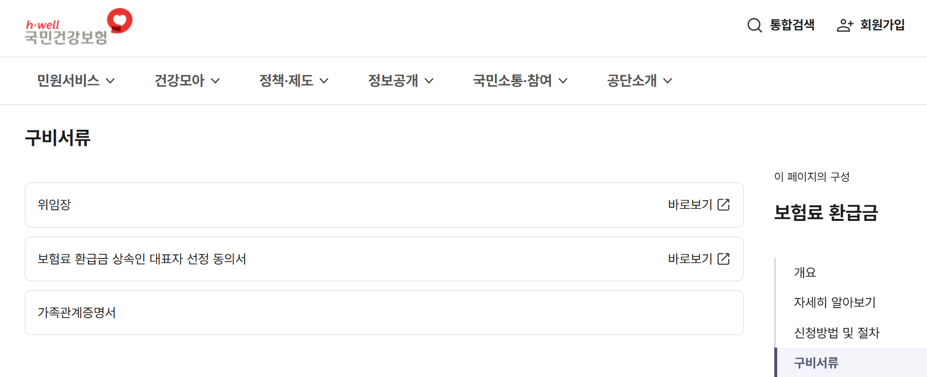 - 사망자의 가족관계증명서, 상속동의서, 환입 납부이행각서 등 추가 서류 필요