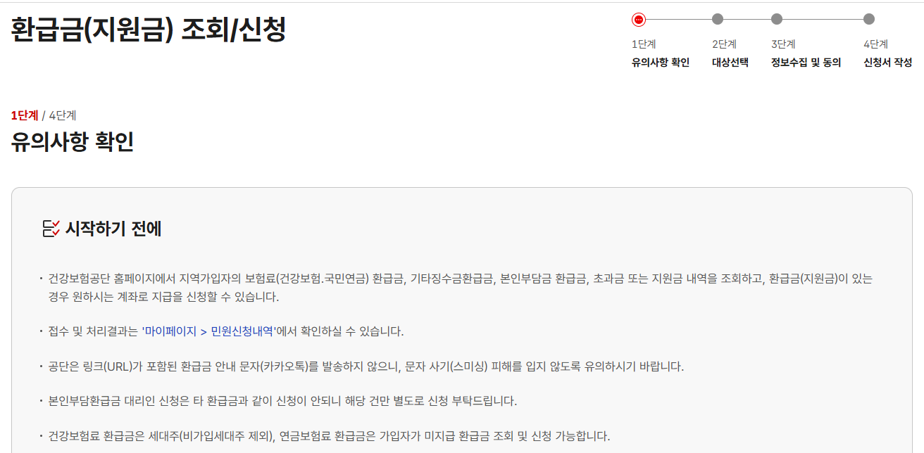- 공단은 문자나 이메일 URL로 환급 안내하지 않습니다. 피싱 사기에 주의하세요!