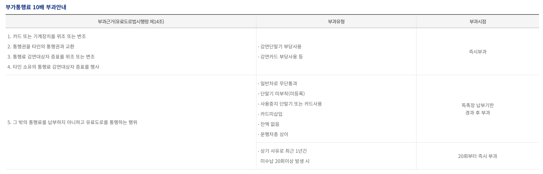 예컨대, 5,000원의 통행료를 미납했을 경우 단순 납부 시에는 5,000원만 내면 되지만, 기한을 넘기면 5만 원 이상의 과태료로 불어납니다. 단순한 부주의가 법적 문제로 번질 수 있음을 유념해야 합니다.
