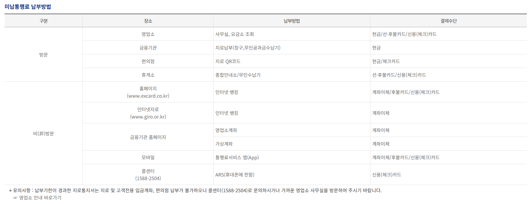 - 고속도로 휴게소, 영업소 방문 납부