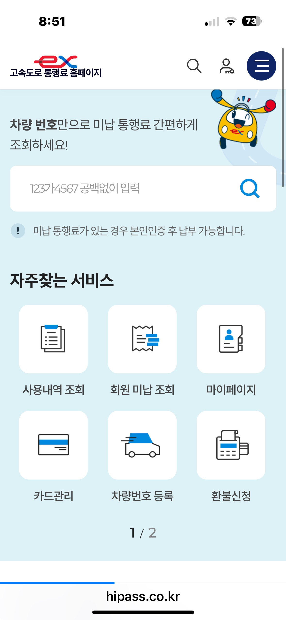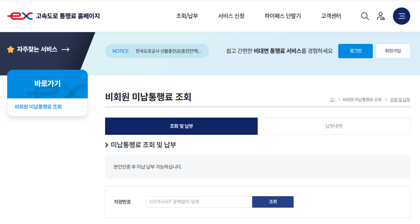 하이패스 미납 통행료 확인하러 바로가기