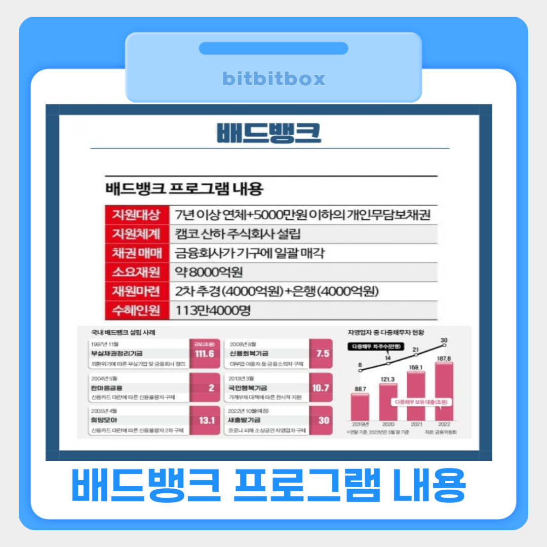 | 구분 | 배드뱅크 | 개인회생 |