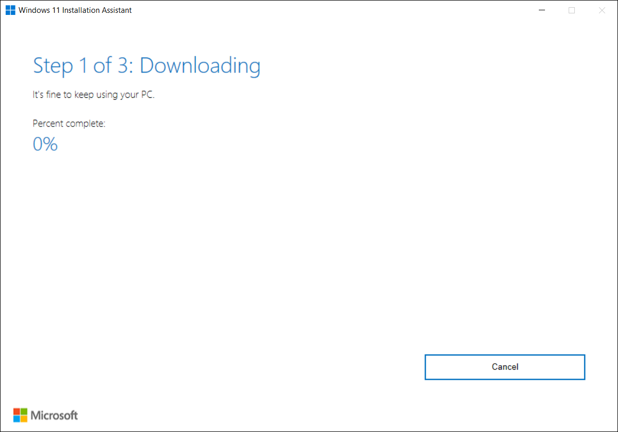 - 설치 도우미가 Windows 11을 다운로드 중입니다. 다운로드하는 데 시간이 걸릴 수 있으며 PC를 계속 사용할 수 있습니다.
