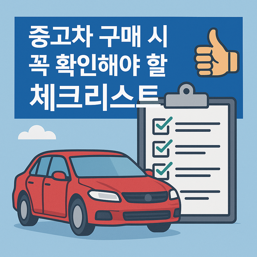 중고차는 한 번의 실수가 수백만 원으로 돌아옵니다. 오늘 체크리스트대로 준비→현장 점검→서류 교차검증→시운전→특약 계약 순서만 지키면 실패 확률을 획기적으로 줄일 수 있습니다. 철저한 확인이 최고의 보험입니다. 안전하고 현명한 선택 하세요! 🚗✨