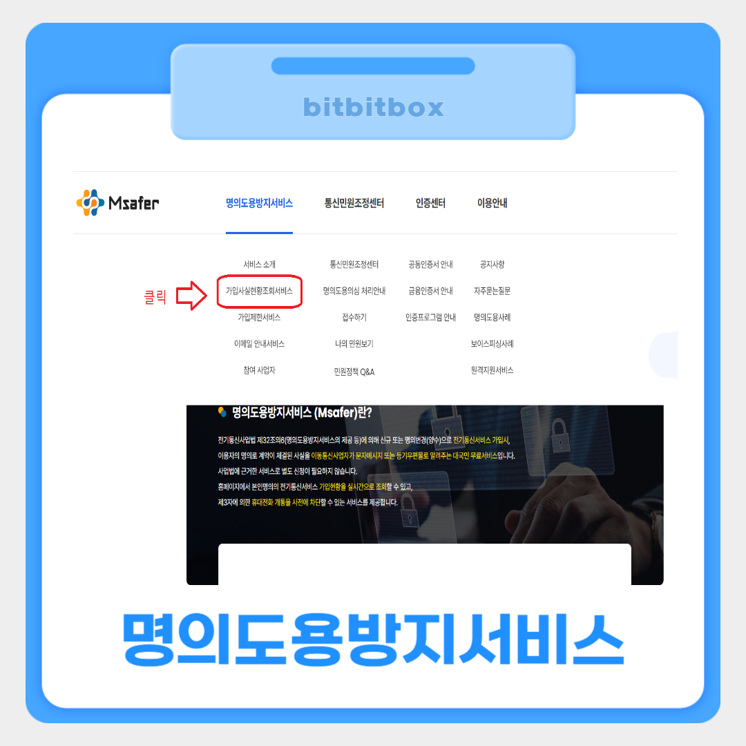 엠세이퍼(Msafer)에서 명의도용방지 서비스를 이용할 수 있습니다.