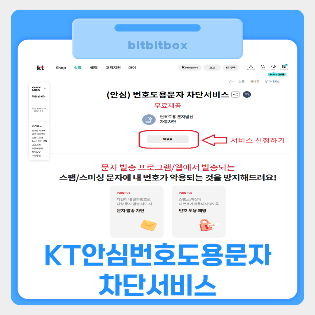KT 안심 번호도용 문자 차단 서비스 신청 바로가기