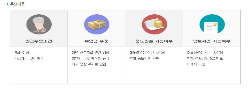- 적립 금액: 기업이 연간 연봉의 1/12 이상을 납입.