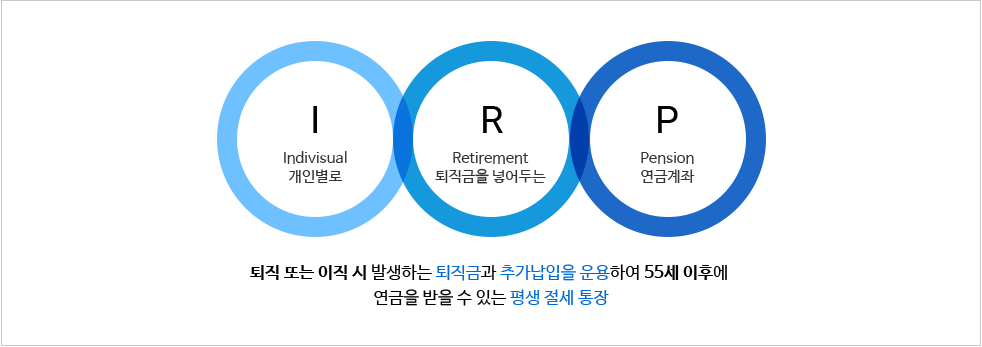 - IRP는 Individual Retirement Pension의 약자로, 퇴직금 및 직접 납입한 금액을 개인 명의 계좌에서 운용할 수 있는 퇴직연금 제도입니다.