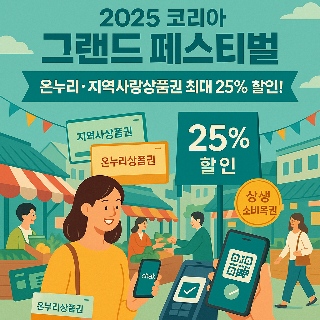 이번 축제 기간 디지털 온누리상품권 역시 파격적으로 상향됩니다. 수도권은 15%, 비수도권은 20%, 인구감소지역은 무려 25%까지 할인이 적용됩니다. 이는 기본 10% 충전할인 + 특별 환급을 합산한 체감치입니다.